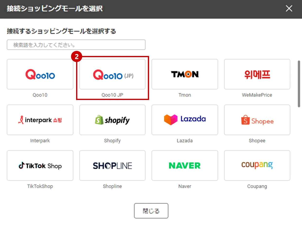 "Ebay Japan(Qoo10 JP)"を選択した後、下段の"ショッピングモール連動登録"へスクロールを移動してください。