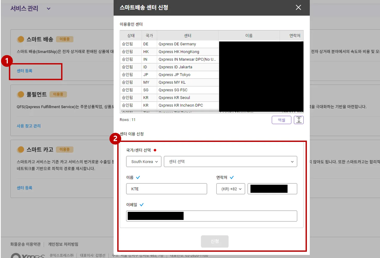 스마트 배송의 [센터 등록]을 눌러주세요.
