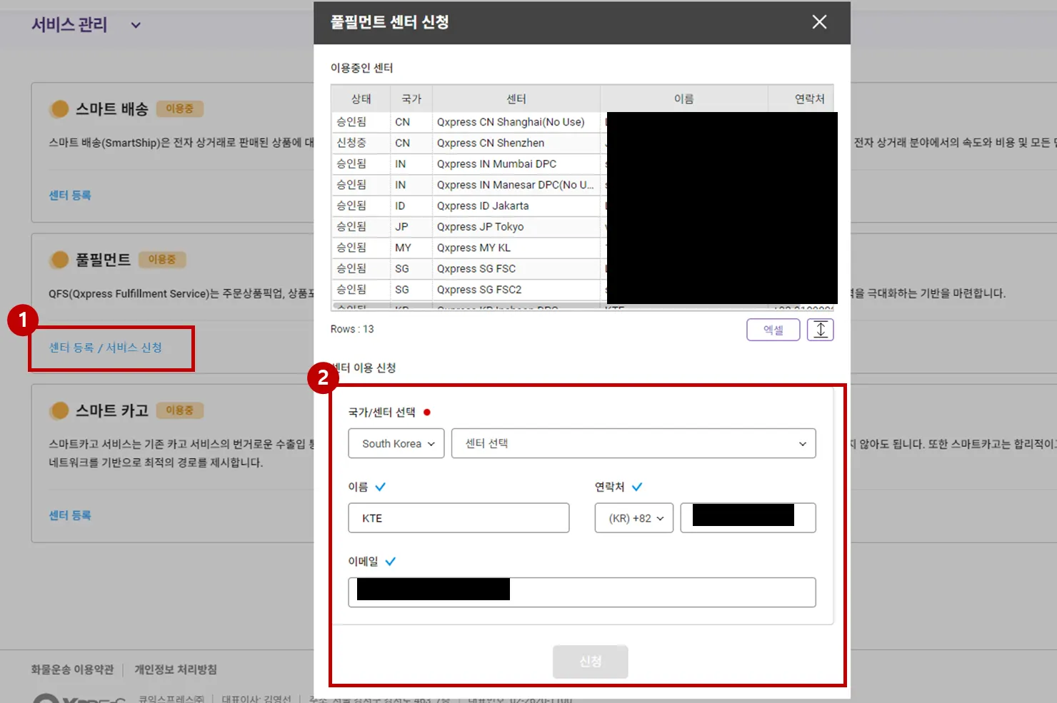 위와 같이 신청이 완료되면 관리자 승인 후 풀필먼트 서비스 이용 가능합니다.