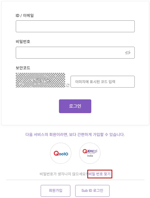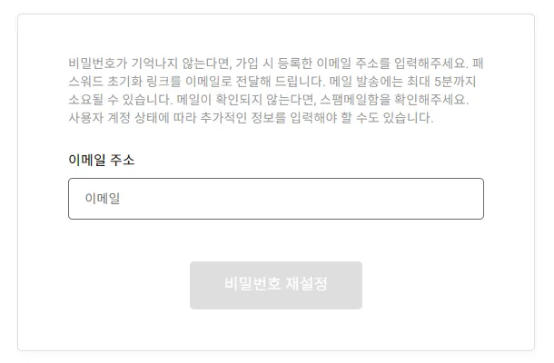 이메일 주소로 로그인하는 계정의 비밀번호를 초기화하려면 아이디 입력란에 이메일 주소를 한 번 더 입력해주세요.