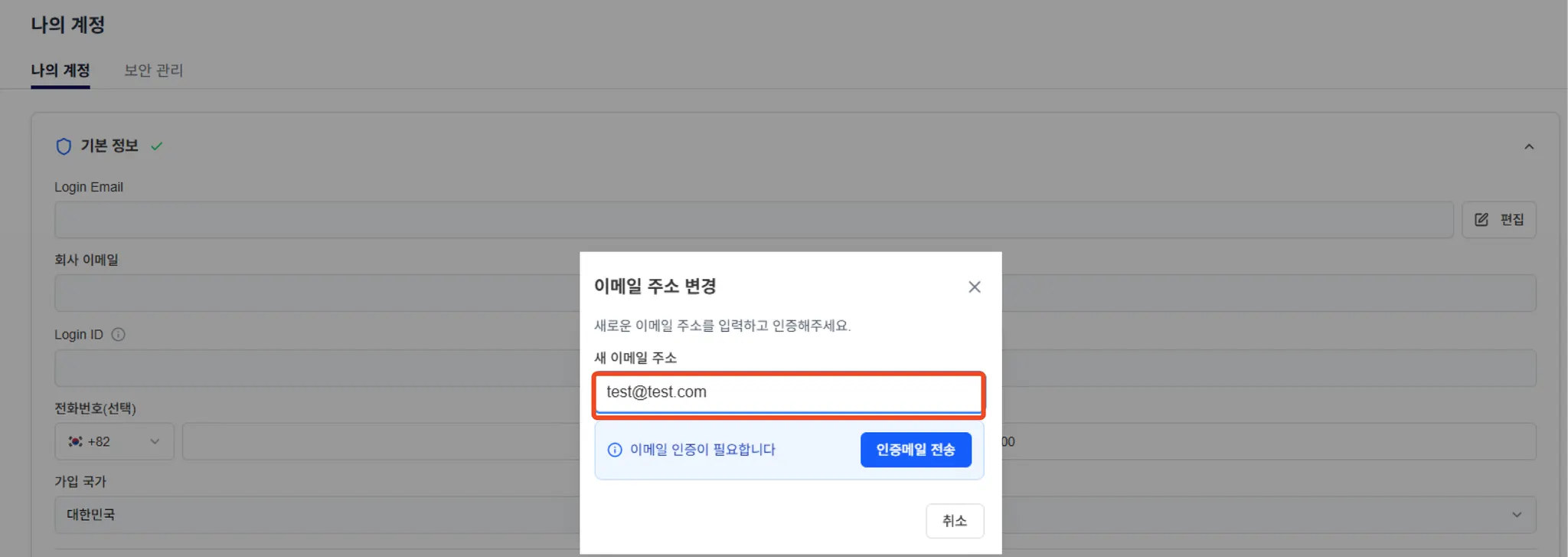 변경 할 메일 주소 입력