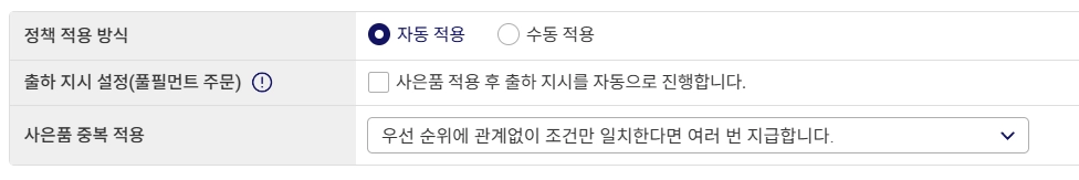 사은품 중복 적용 : [우선 순위 적용, 모든 정책 적용] 중 선택