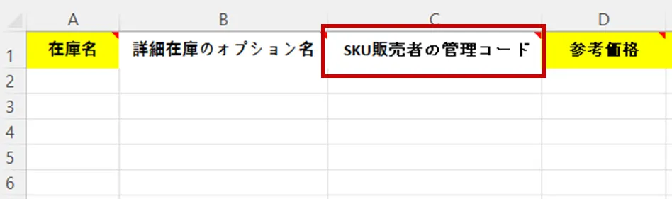 大量の商品を登録及びマッピングする場合は、Excelでアップロードする際に一緒に'SKU販売者管理コード'を入力していただくと便利です。