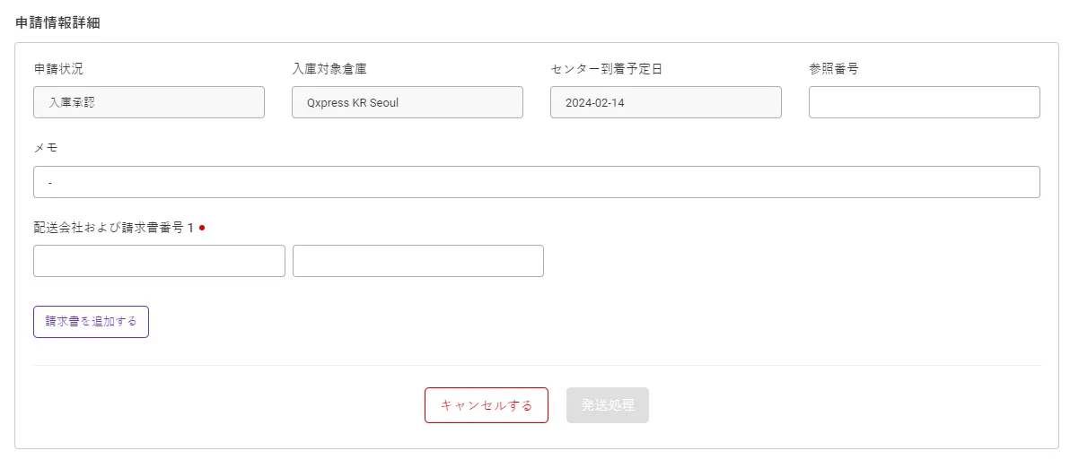 すべての情報が入力完了したら、[入庫申請する]] ボタンを押してください。