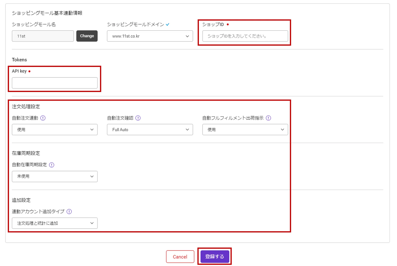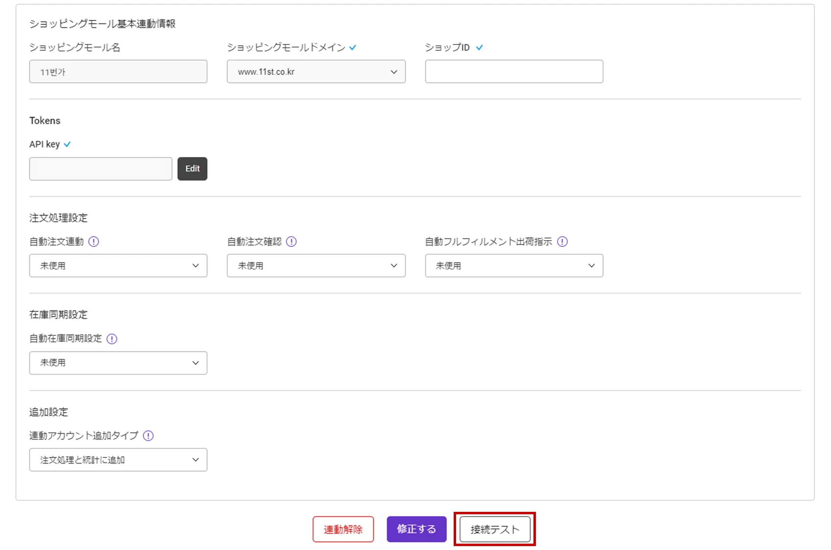 スマートシップシステムがショッピングモールの注文を取得し、注文確認および発送処理を遠隔で行うためにはAPI接続が必要です。 本文書では、 11th Street サービスに対するAPI接続設定方法について説明します。