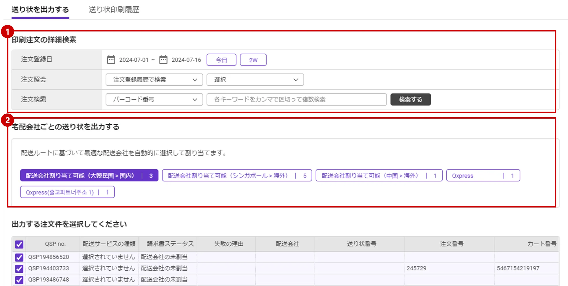 送り状の作成と出力方法には、配送会社の割り当てまたは未割り当ての状態に応じて2つの方法があります。