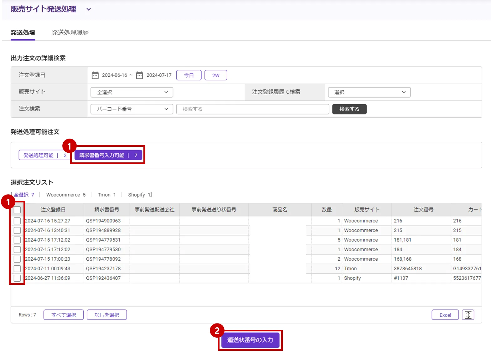 - 注文登録履歴で検索:すべての販売サイトの登録注文を照会できます。