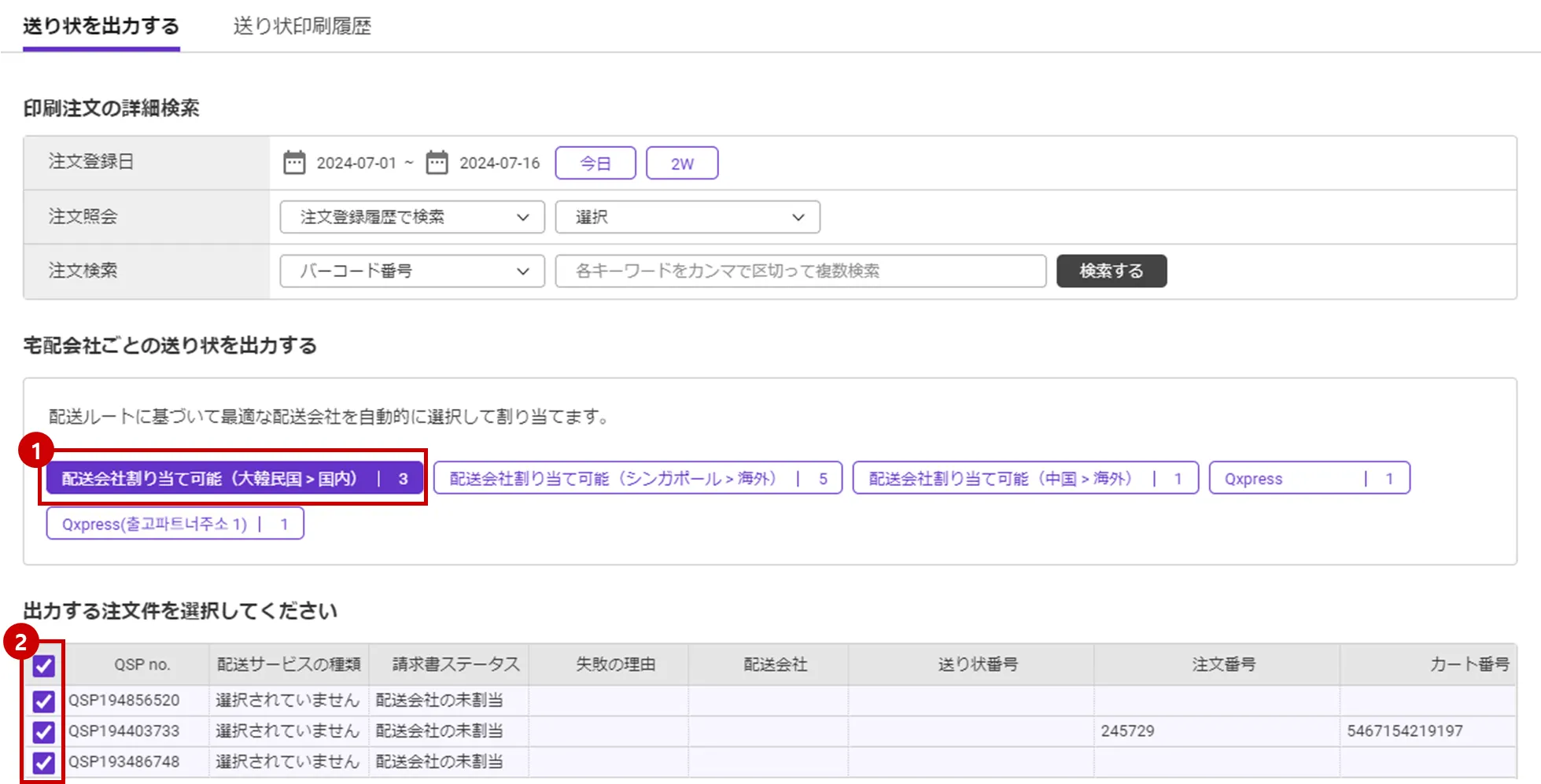 Qxpress 配送会社として割り当てが完了した注文のみラベル出力が可能です。