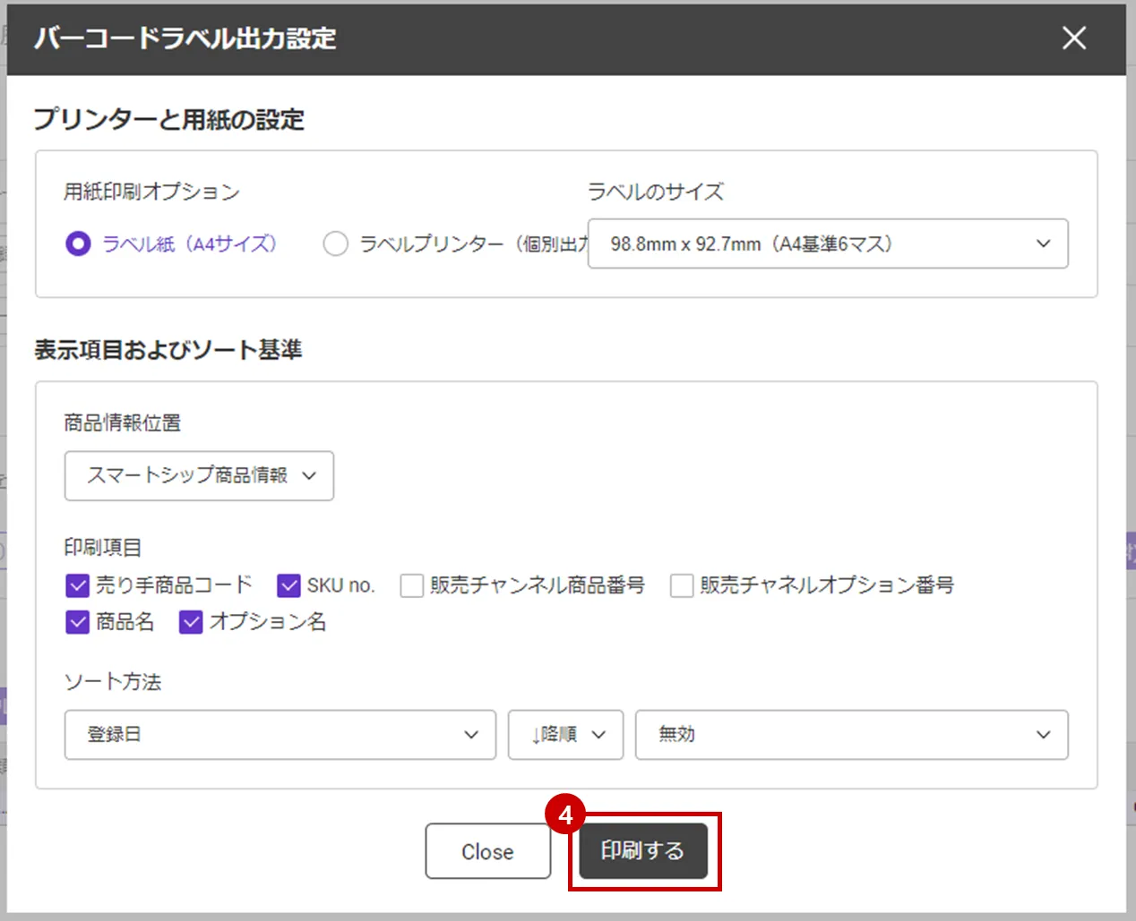 ラベルプリンター(個別出力) : ラベルプリンターに出力する際に使用する印刷オプションです。