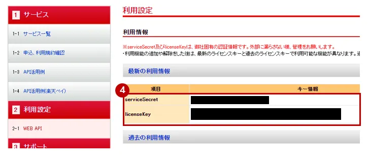 Rakutenサービスでは、次の手順に従ってAPIキーを照会/発行することができます。