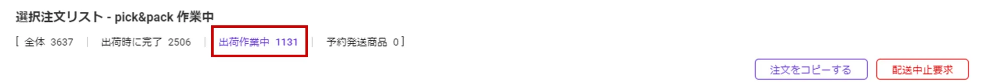 <注文管理>出荷作業中、梱包完了