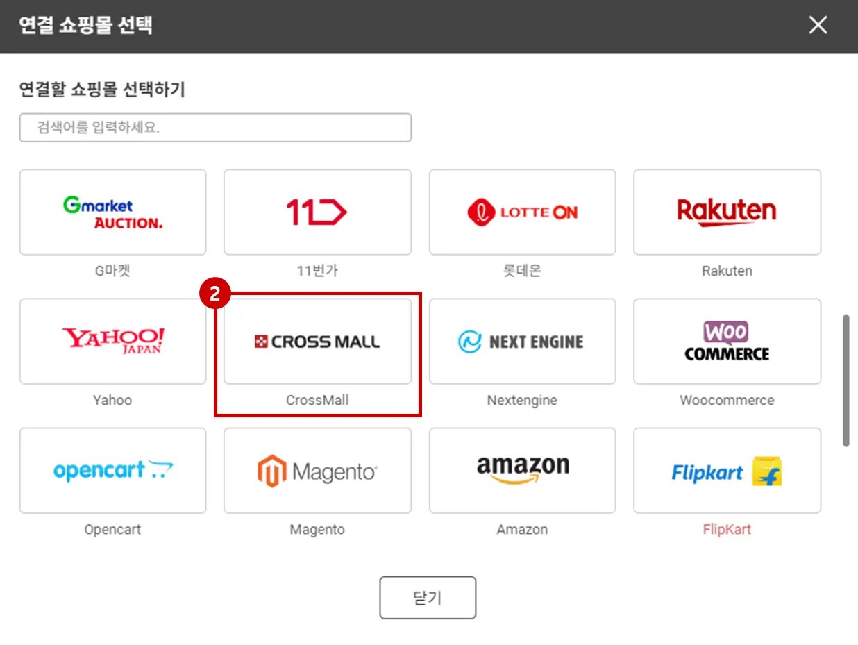 “Crossmall”を選択した後、下段の"ショッピングモール連動登録"へスクロールを移動してください。