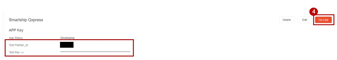 Test Keyでは連動できませんので、[Go-Live]ボタンを押して次のステップを進めてください。 次のステップを進めるためには、スマートシップログイン情報をShopeeに提供する必要があります。