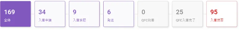 QFC入庫完了:発送された貨物の申請内訳と到着した貨物の内容が合っているか検収完了した状態です。 入庫が完了すると、保管している倉庫のSKU数量に反映されます。