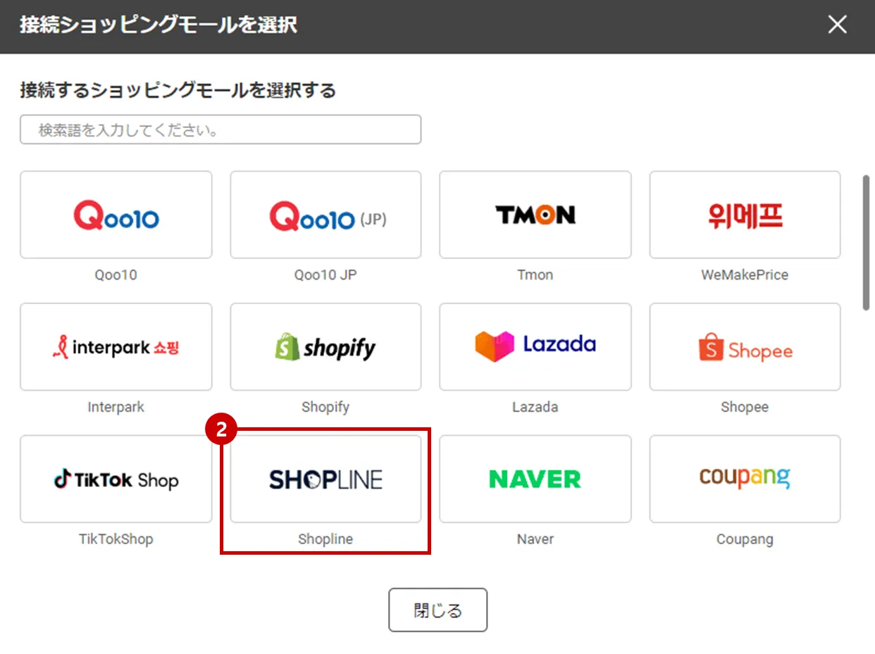 “SHOPLINE”を選択した後、下段の"ショッピングモール連動登録"へスクロールを移動してください。