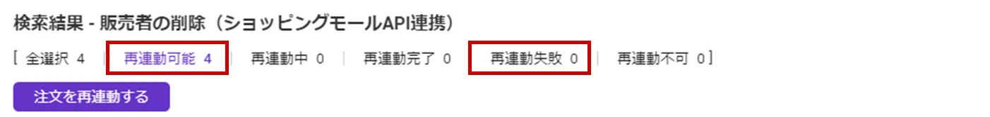 最初の注文登録がショッピングモールAPI連動の場合に再連動の試みが可能です。