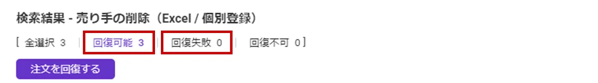 [注文を回復する] ボタンは、「回復可能 」および「回復失敗」をクリックするときにのみ表示されます。
