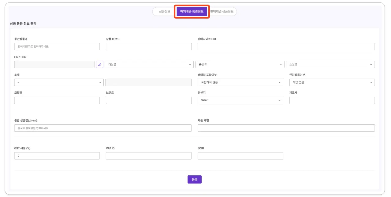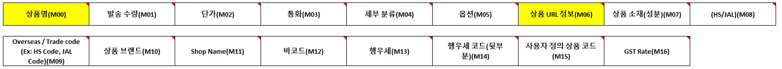 通関商品名 | N | 基本的にAIを通じて自動翻訳されますが、ご希望の英語名で申告が必要な場合は入力 |
