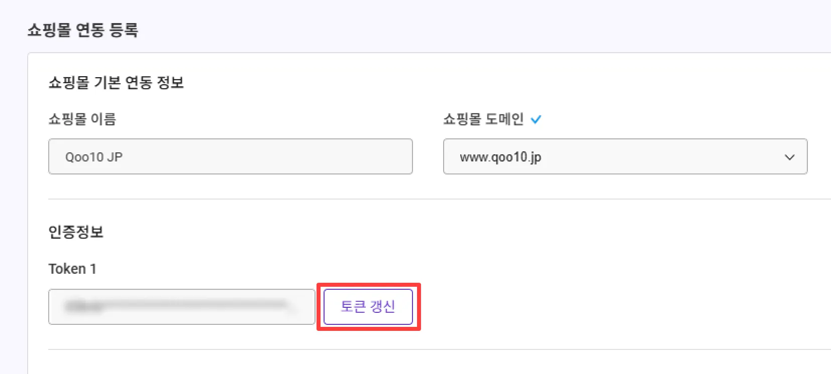 인증 정보란에 있는 [토큰 갱신하기] 버튼을 클릭합니다.