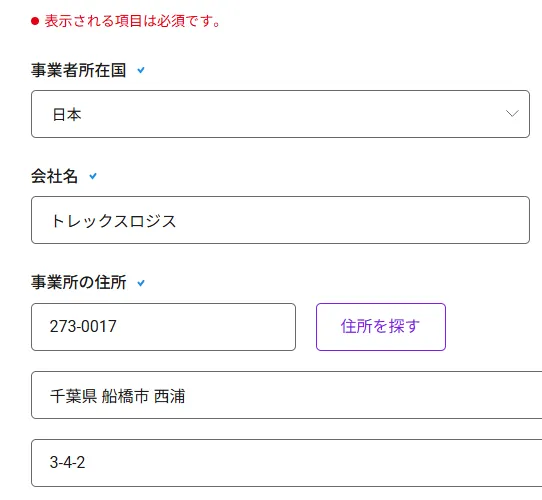 詳細アドレスは少なくとも1文字以上でなければなりません。