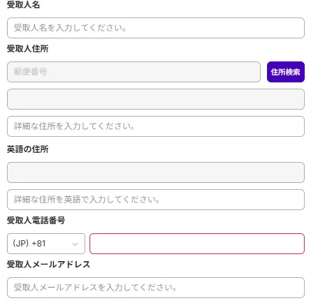 海外配送時はパスポートまたは現地の身分証明書の英文名で記載