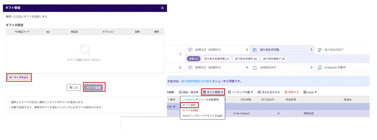 ギフトポリシーなしで特定の注文にギフトを追加する方法