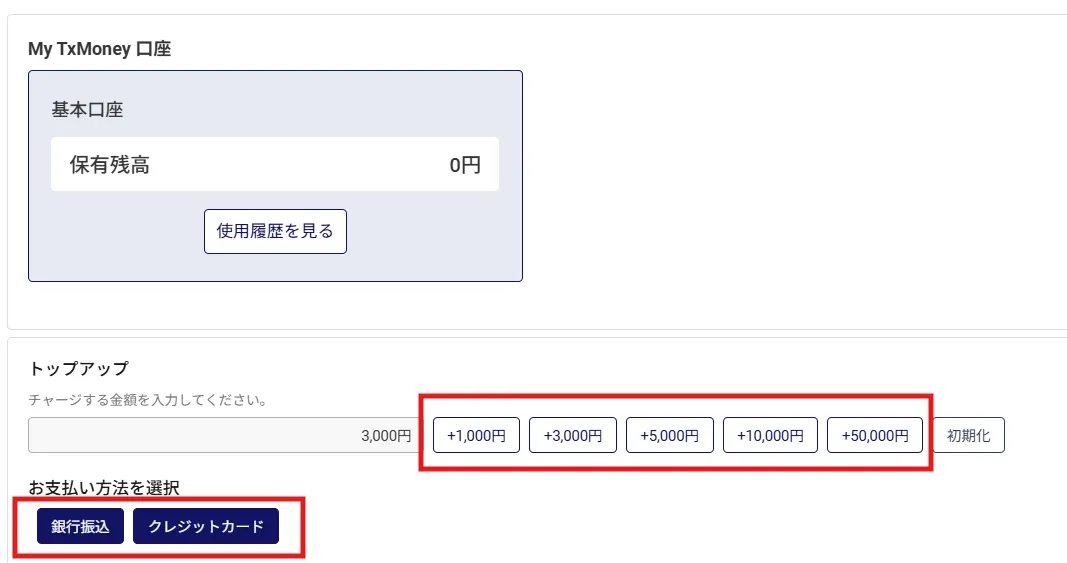 TxMoneyをチャージ後、一部金額を使用した場合は返金できません。