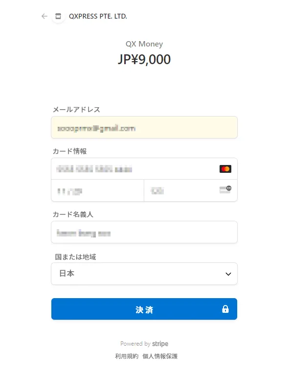 - [クレジットカード] はシンガポールの「Stripe PG」を使用しており、カード決済明細には承認国が「SINGAPORE」と表示されます。