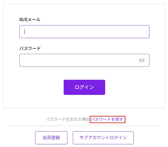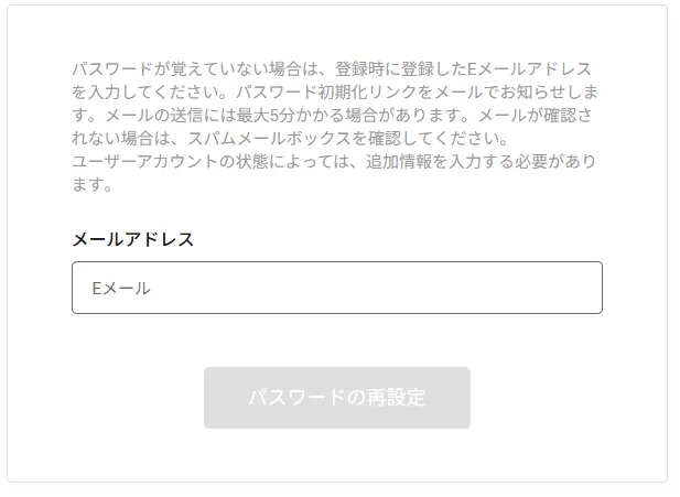 Eメールアドレスでログインしているアカウントのパスワードを初期化するには、IDフィールドにもう一度Eメールアドレスを入力してください。