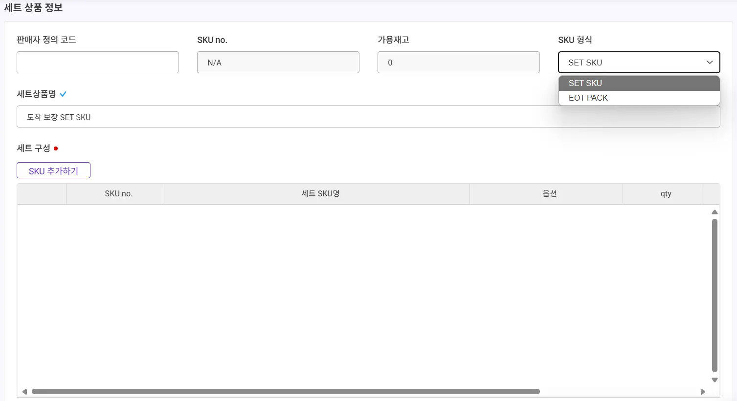 SET SKU 設定時にSKUフォーマットを[EOT PACK]に設定します。