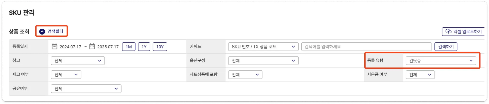 韓ダッシュ在庫のみ検索する :[検索フィルタ]選択→上部登録タイプを[カンダッシュ]に選択→検索