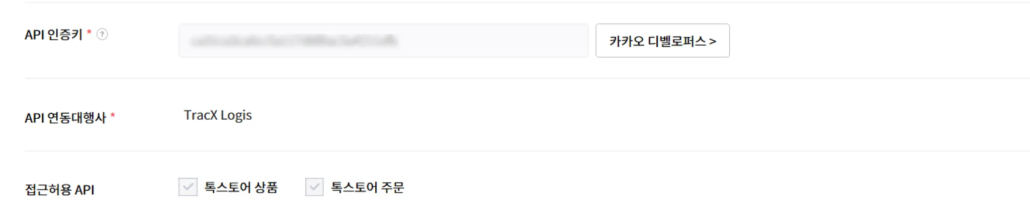 카카오 쇼핑 서비스에 대한 API 연결 설정을 위해서는 다음의 정보가 필요합니다. 스마트십에서 API 연결을 설정하기 전에 각 플랫폼 관리도구에서 확인 및 발급을 해주세요.