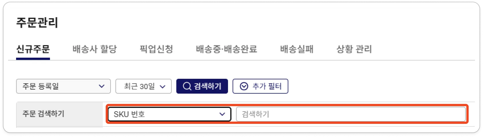 注文検索の「SKU番号」で検索ができます。(複数件を検索する場合は、スペースまたはカンマで区切って入力可能)