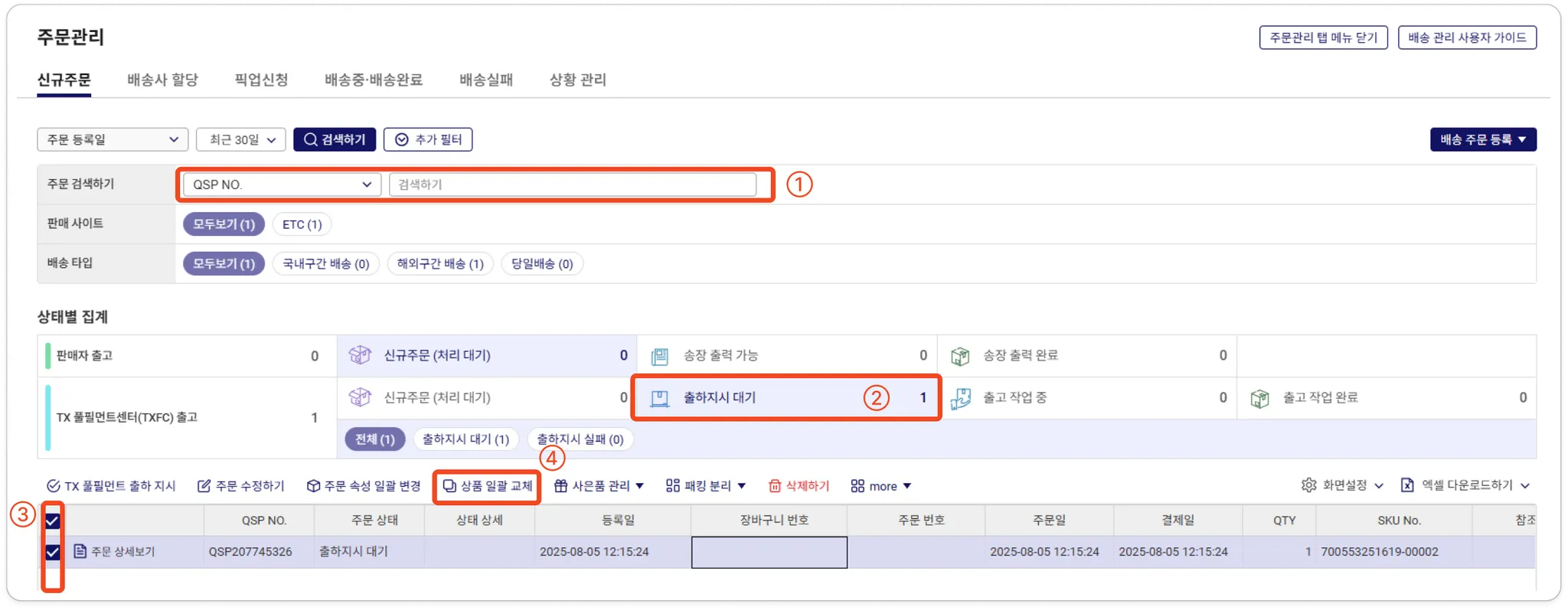 [新規注文(処理待ち)] および [出荷指示待ち] の状態でのみ交換が可能です。
