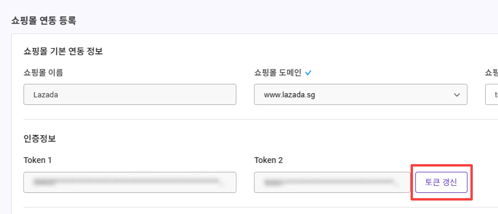인증 정보란에 있는 [토큰 갱신] 버튼을 클릭합니다.