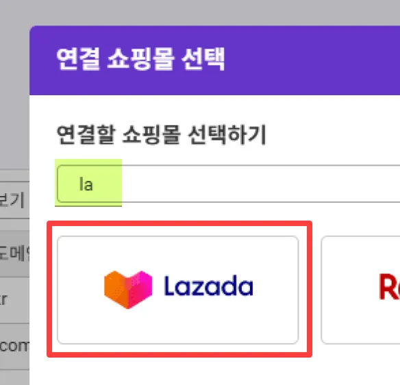 키를 변경할 Lazada 샵을 선택합니다.