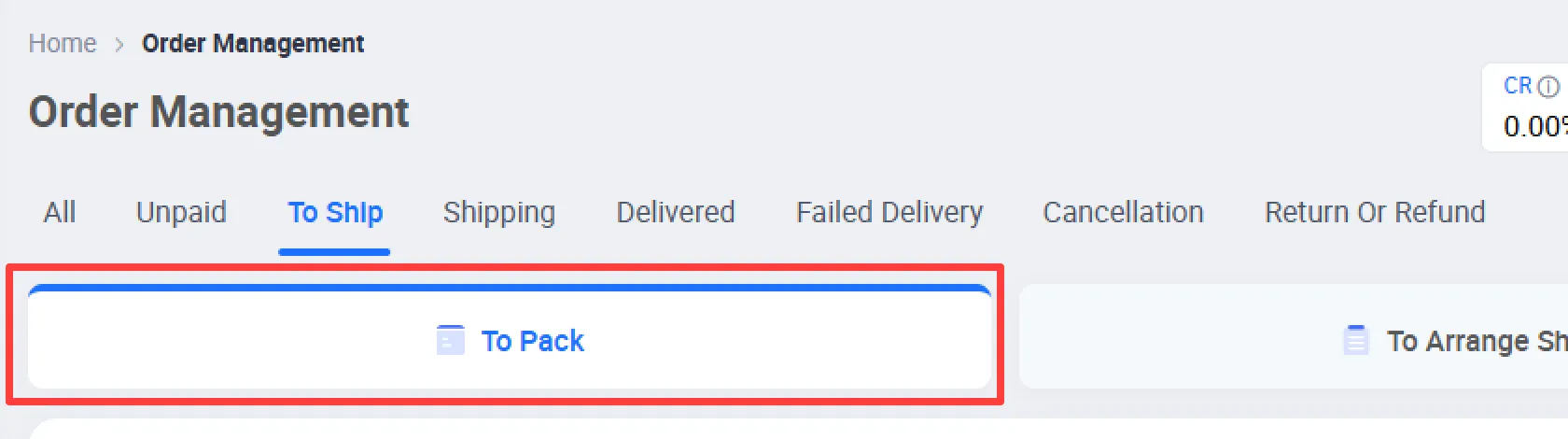 주문 중 “To Pack” 상태(To Ship 하위)의 주문을 가져옵니다.
