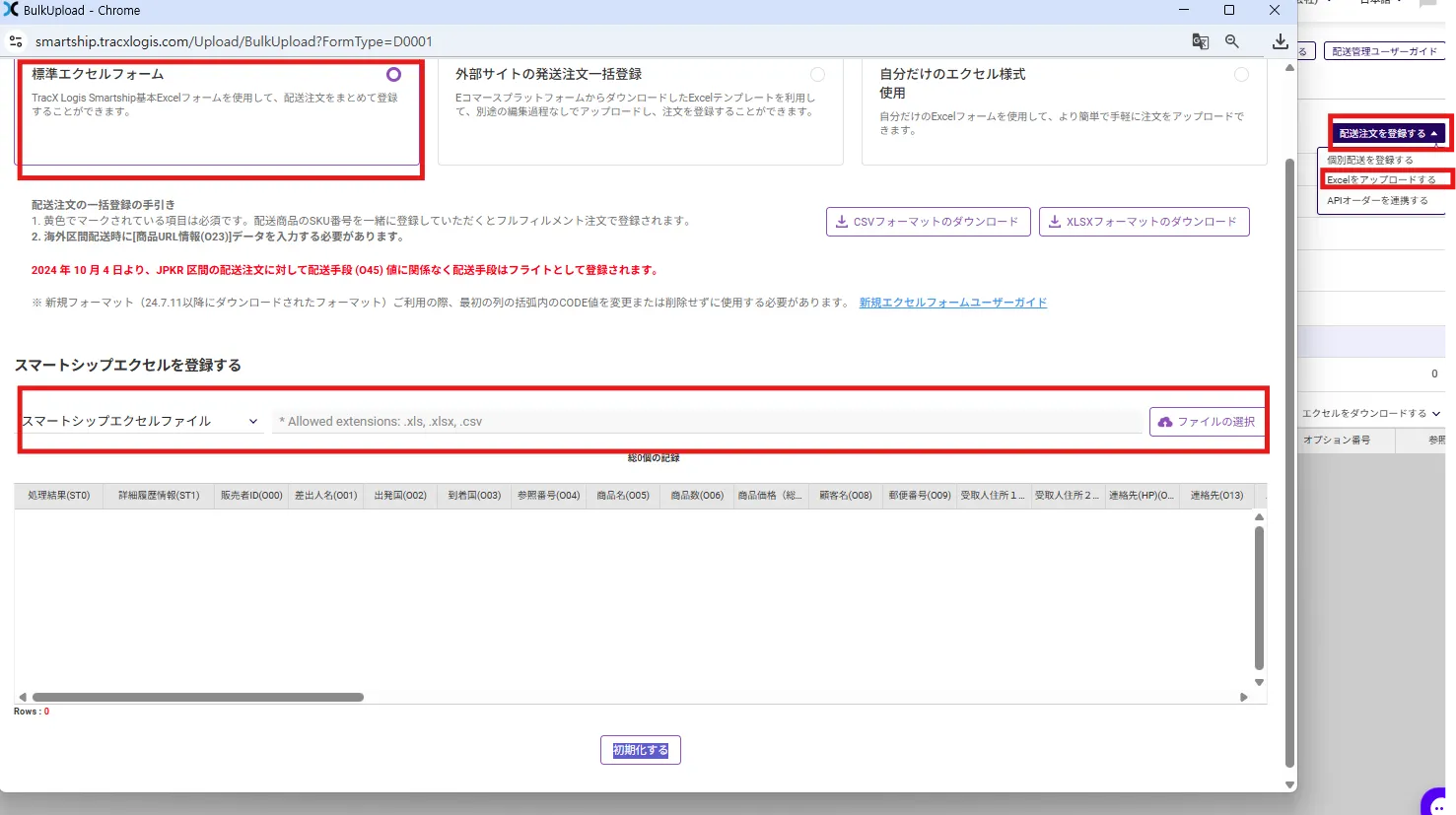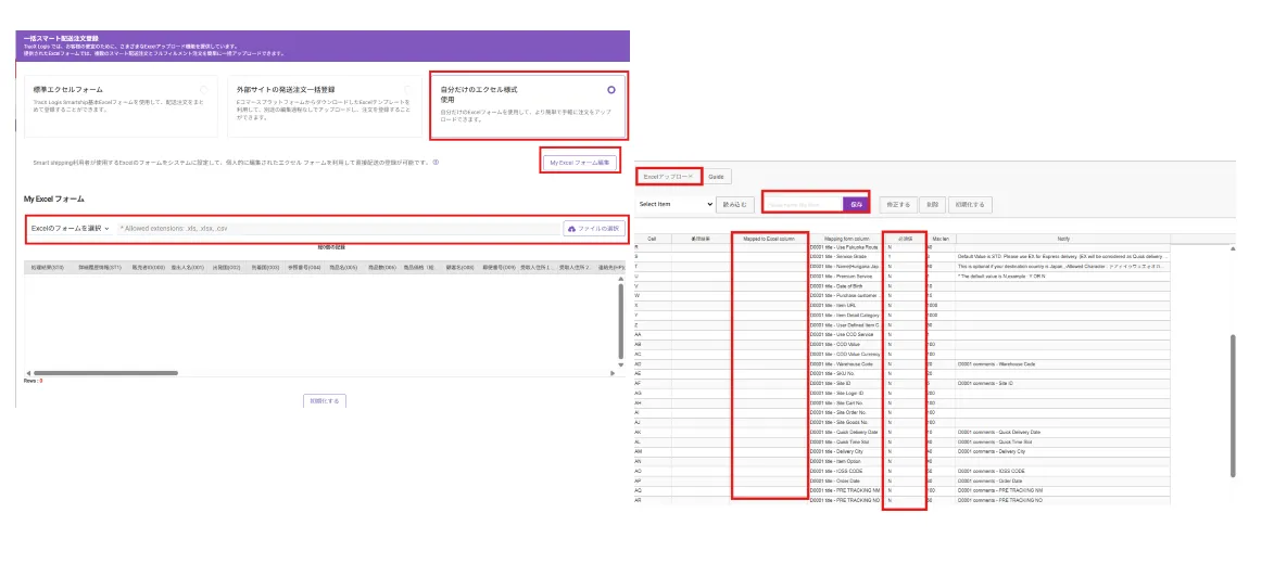 (2-3) 自分だけのエクセル様式 : ご希望の Excel フォーマットをスマートシップにマッピングし、注文データをアップロードする方式