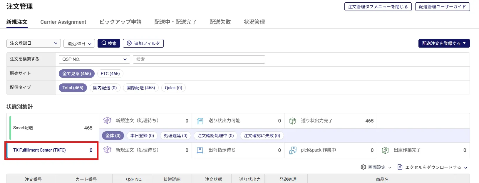 ② 注文情報を入力 (出荷タイプの選択 : TXFC出庫)