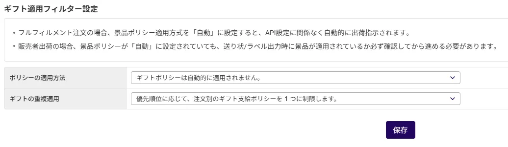 ギフトの重複適用 : [優先順位を適用、すべての条件を適用] の中から選択