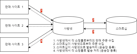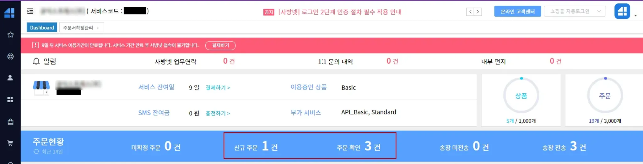 따라서 주문이 발생한 쇼핑몰에서 사방넷까지 주문 수집을 하시는 작업은 사방넷에서 직접 처리해주셔야 합니다.