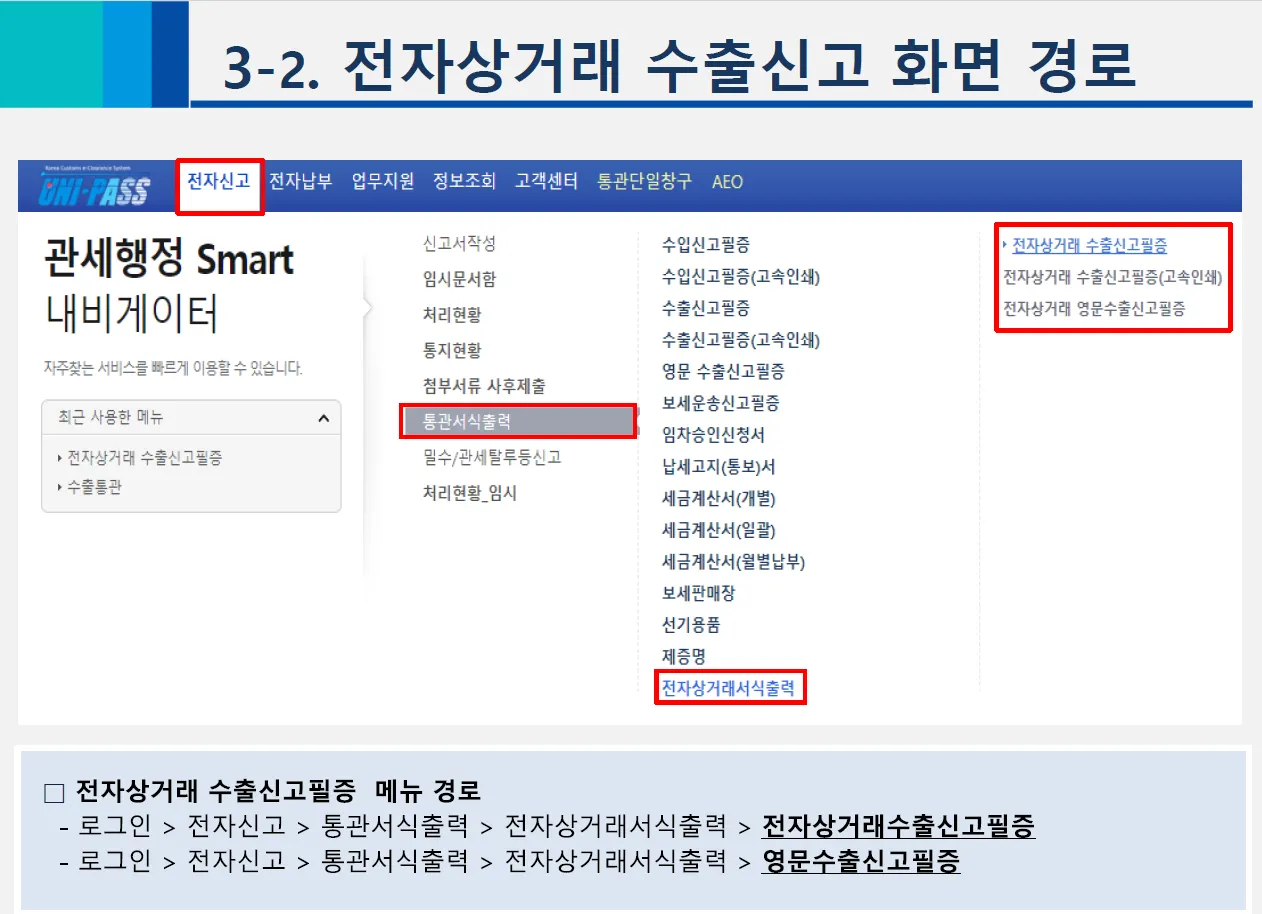 1. 一般の輸出申告書ではなく、電子商取引(EC)輸出申告書でご確認ください。