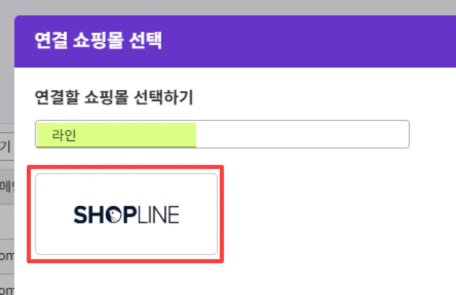 연결할 쇼핑사이트를 선택합니다. 빠르게 찾기 위해서는 쇼핑 사이트 이름의 일부만 타이핑하여 검색하면 빠르게 찾을 수 있습니다.