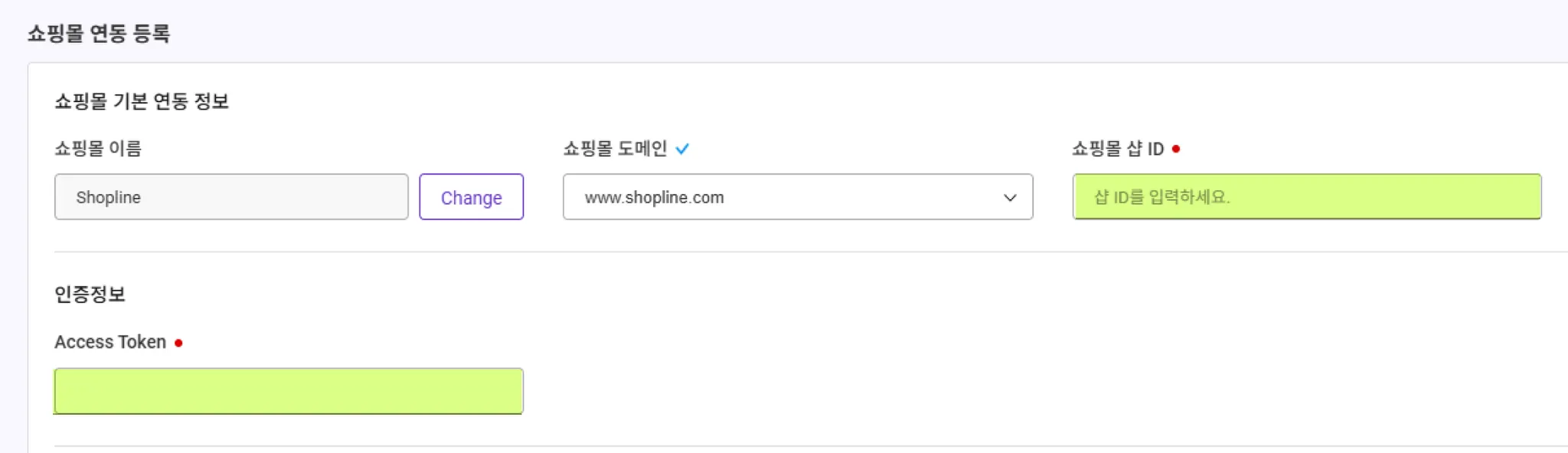 샵 ID : Shopline Admin에 로그인하는 판매자 ID입니다.