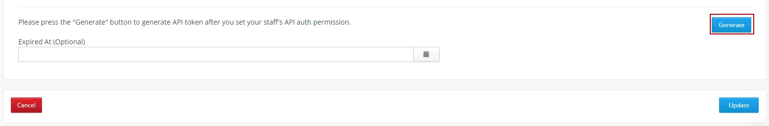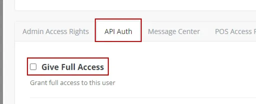 Staff Member 추가 화면에서 API Auth 탭을 클릭합니다.