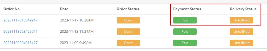 주문 중 “Paid” & “UnFulfilled” 상태의 주문을 가져옵니다. (두 조건을 모두 만족해야 합니다.)