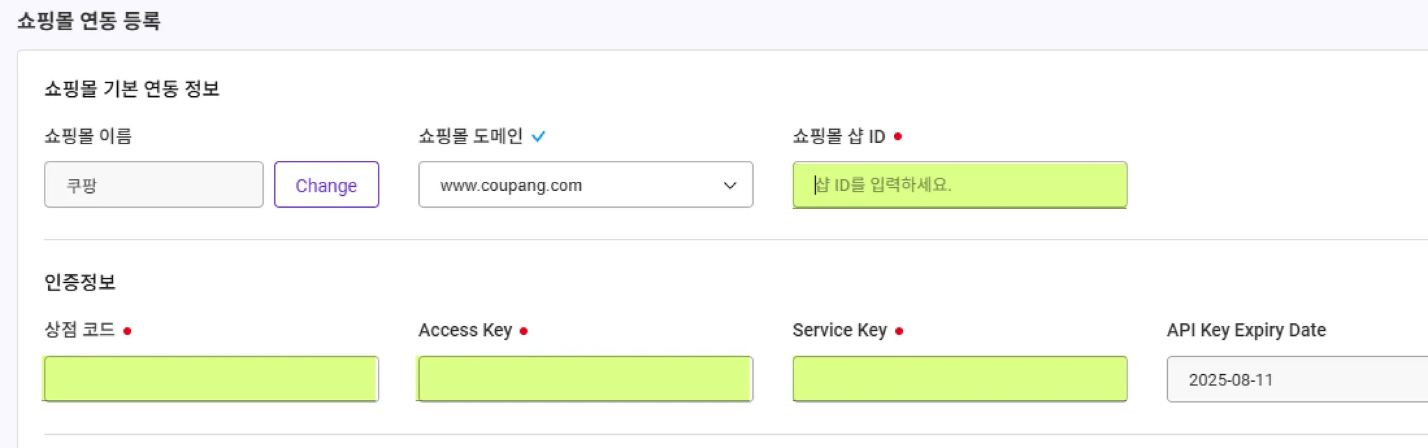 키가 만료되기 전에 쇼핑 사이트 플랫폼에서 API 키를 갱신 또는 재발급 받아야 합니다.