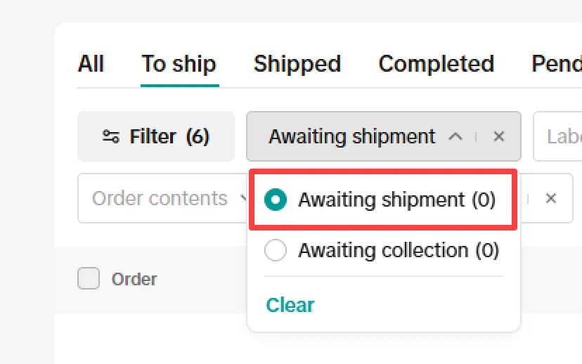 주문 중 “Awaiting Shipment” (To Ship 하위 상태값) 상태의 주문을 가져옵니다.