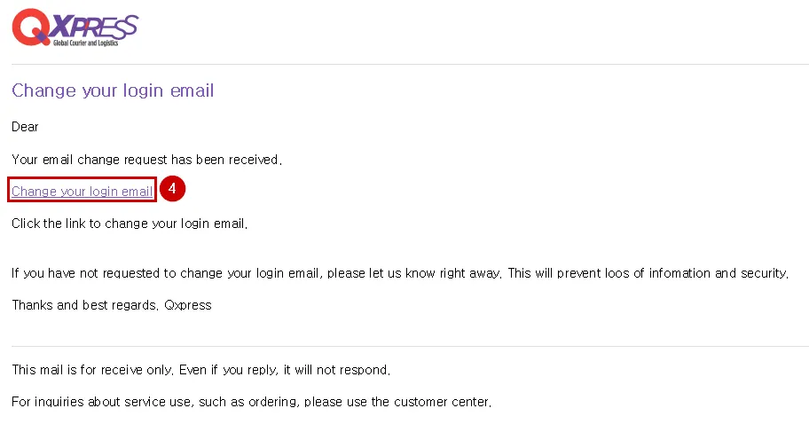 3. Qxpressガイド、広告、お問い合わせなどのEメールは、変更したEメールIDと同じEメールアドレスに送信されます。