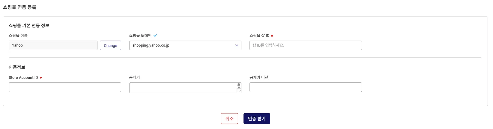 쇼핑몰 샵 ID 란에 야후! Shopping 비즈니스 ID를 입력합니다.